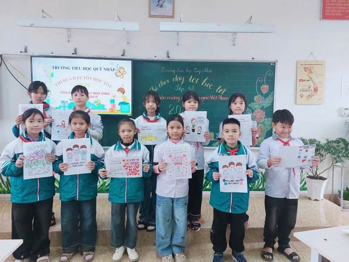 Hướng tới ngày 20/11, Trường Tiểu học Quỹ Nhất đã đẩy mạnh các hoạt động tuyên truyền nhằm giúp học sinh hiểu sâu sắc hơn về truyền thống “Tôn sư trọng đạo”. Qua các buổi sinh hoạt tập thể, chuyên đề giáo dục và sự đồng hành của phụ huynh, những câu chuyện đẹp về người thầy đã được lan tỏa một cách nhẹ nhàng nhưng sâu sắc. Học sinh tham gia nhiều hoạt động ý nghĩa. Dù là những tấm thiệp xinh xắn hay những nét vẽ ngây thơ, tất cả đều chứa đựng tình cảm trong trẻo, là lời cảm ơn chân thành gửi tới thầy cô – những người đã và đang chắp cánh cho ước mơ của các em.
