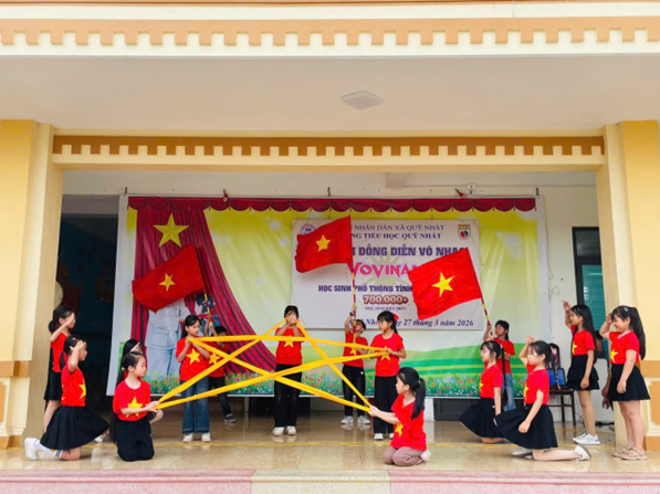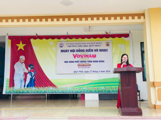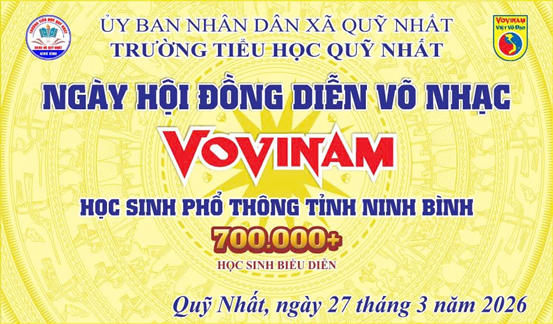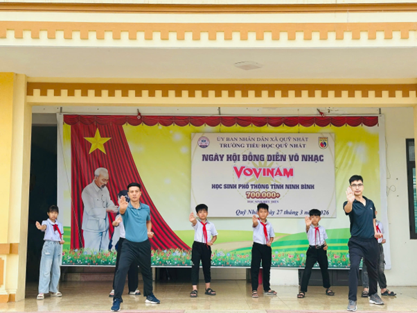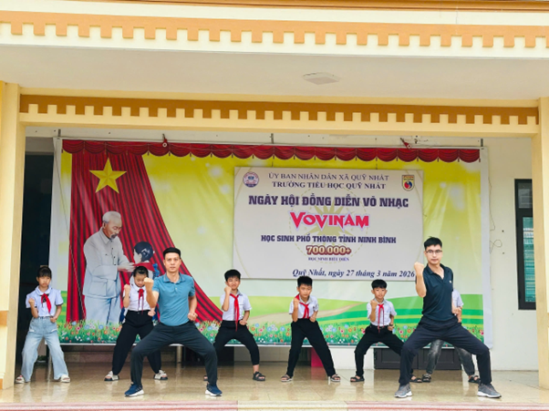 Thực hiện Công văn số 520/SGDĐT-CTHSSV ngày 03/3/2026 và Công văn số 784/SGDĐT-CTHSSV của Sở Giáo dục và Đào tạo Ninh Bình về việc tổ chức triển khai Chương trình đồng diễn Ngày hội võ nhạc Vovinam trong các cơ sở giáo dục, sáng ngày 27 tháng 3 năm 2026, Trường Tiểu học Quỹ Nhất đã long trọng tổ chức Chương trình biểu diễn võ nhạc Vovinam năm 2026.
