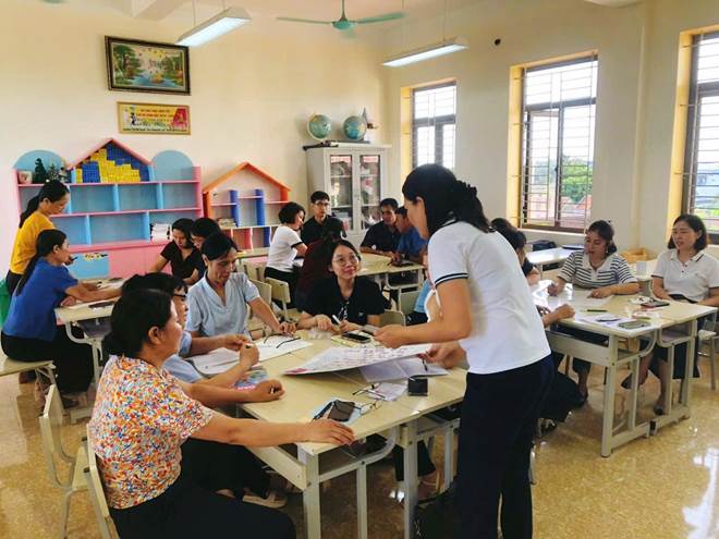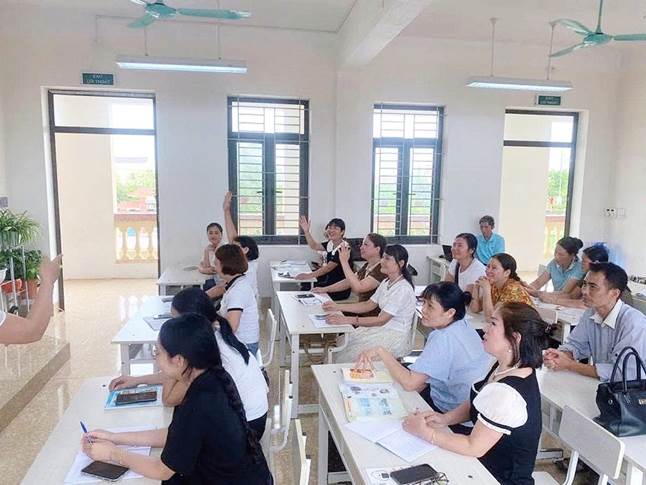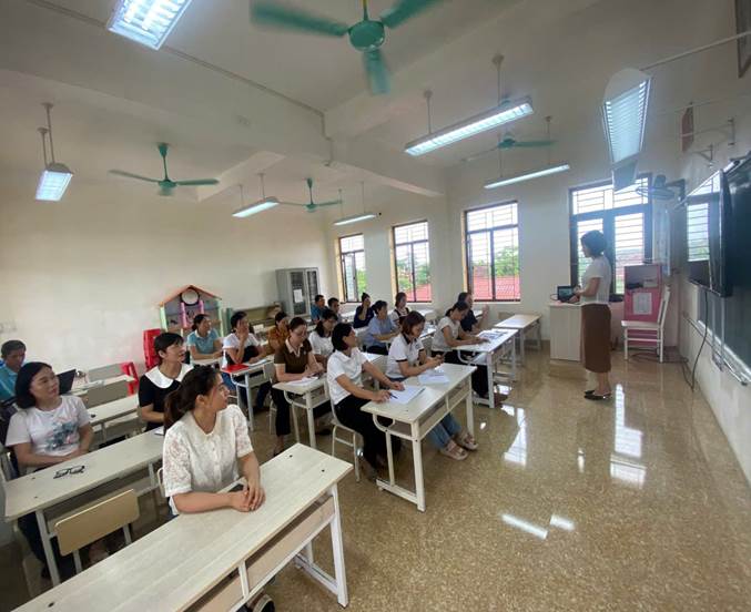 Chiều 21/8, cô Khương Thị Vân – Tổ trưởng chuyên môn khối 1, 2, 3 trình bày chuyên đề “Sử dụng phương pháp trò chơi trong dạy học Tiếng Việt ở tiểu học”.