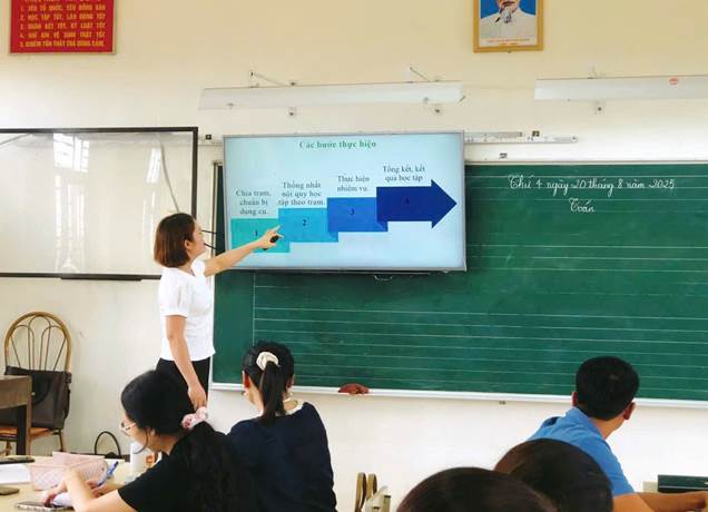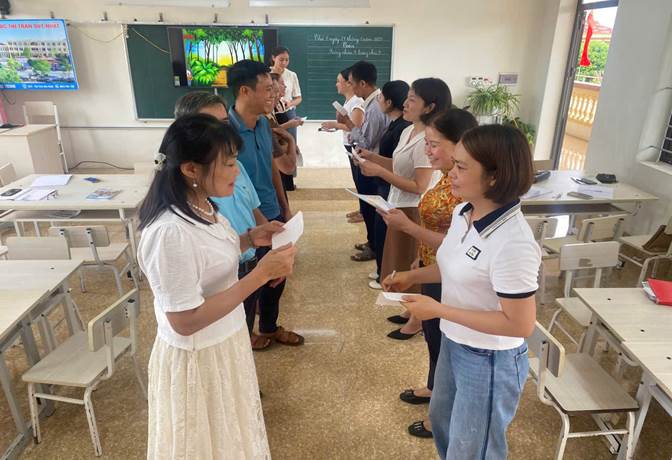 Sau các tiết minh họa, Ban Giám hiệu và các thầy cô đã cùng nhau ngồi lại, thảo luận phân tích những ưu điểm, hạn chế, đồng thời chia sẻ kinh nghiệm và cùng tìm giải pháp. Các ý kiến tập trung vào việc thiết kế hoạt động phù hợp với từng môn học, cách khắc phục khó khăn và phát huy tối đa hiệu quả của các phương pháp dạy học tích cực. Cuộc thảo luận không chỉ là những góp ý chuyên môn, mà còn là sự sẻ chia, động viên để mỗi giáo viên tự tin hơn trong hành trình đổi mới các phương pháp dạy học của mình.