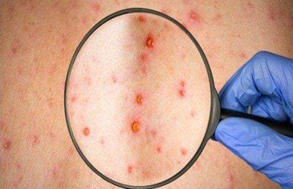 Ngày thứ nhất: Ban sởi mọc ở chân tóc, sau tai, sau gáy, trán, má đầu, mặt, cổ.