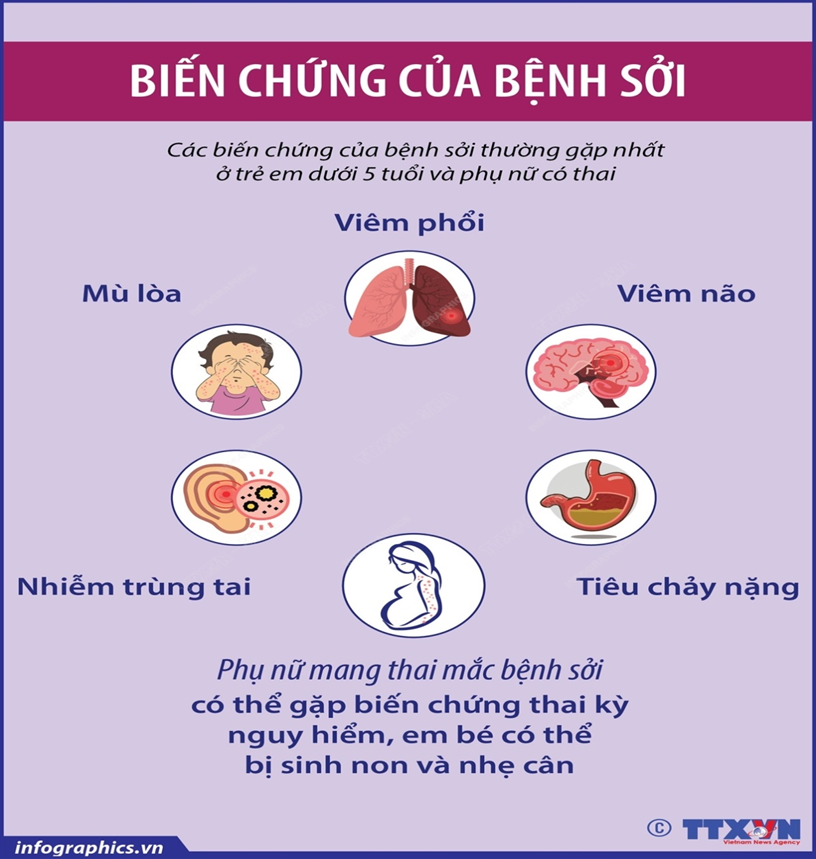 Virus sởi phá huỷ lớp biểu mô niêm mạc và hệ thống miễn dịch, làm giảm lượng vitamin A, do đó trẻ có nguy cơ mắc các bệnh truyền nhiễm khác: