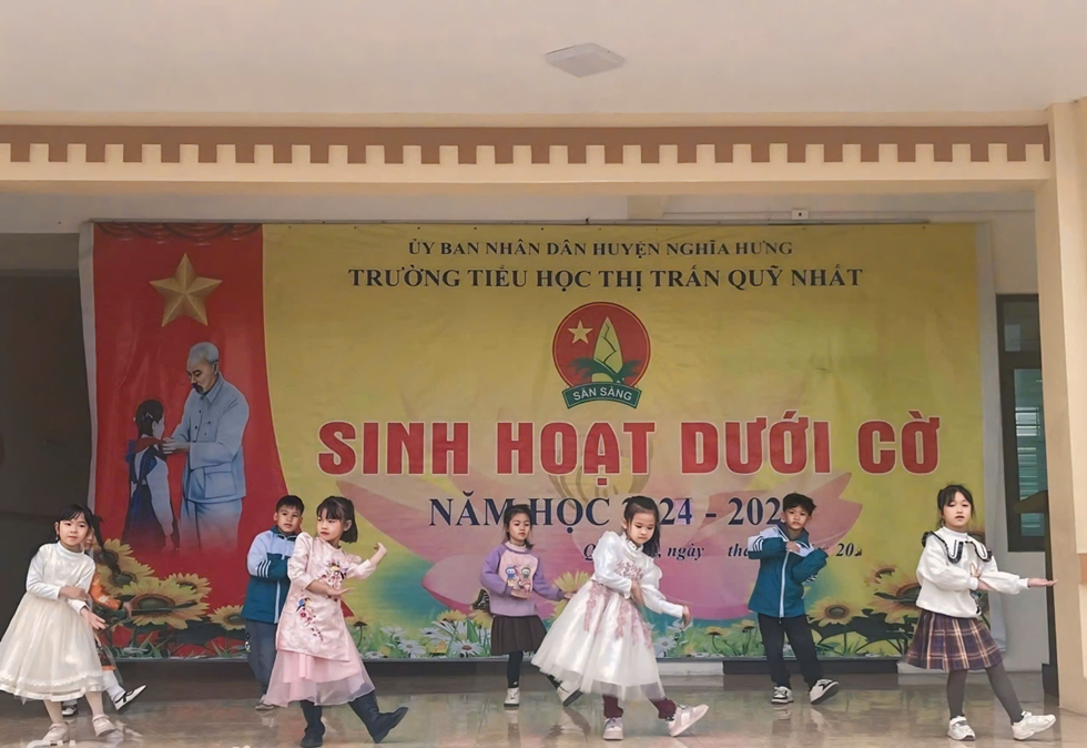 Hoà trong không khí vui vẻ, phấn khởi chào mừng ngày Quốc tế Phụ nữ 8/3, vào buổi sinh hoạt dưới cờ, trường Tiểu học thị trấn Quỹ Nhất đã tổ chức sinh hoạt dưới cờ với chủ đề “Chào mừng 115 ngày Quốc tế Phụ nữ 8/3” nhằm tuyên truyền đến các em học sinh về ý nghĩa của ngày 8/3. Qua đó, các em sẽ thấy được vai trò của người phụ nữ và biết thể hiện tình cảm của mình với những người thân yêu. Đây là một trong những hoạt động nhằm tôn vinh vẻ đẹp và vai trò của người phụ nữ, mở đầu cho các phong trào hướng tới kỉ niệm các ngày lễ lớn của tháng 3. Buổi sinh hoạt có sự tham gia đầy đủ của tập thể cán bộ, giáo viên, nhân viên và học sinh toàn trường. Những điệu múa lời hát của chúng con vang lên qua ca khúc “Mẹ yêu ơi” chính là món quà mà chúng con muốn dành tặng tới các bà, các mẹ, các cô và một nửa thế giới.