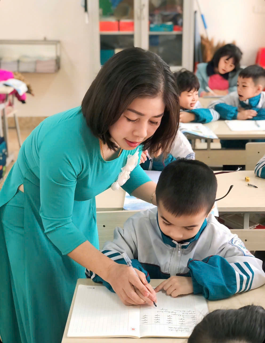 Từng nét chữ xinh xinh thẳng hàng, ngòi bút viết theo tay nhịp nhàng trong tiết tập viết của học sinh lớp 1C