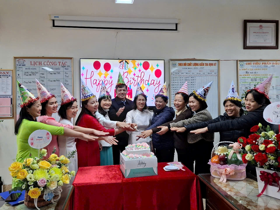 Bên cạch chuỗi hoạt động: Hưởng ứng tuần lễ áo dài, tổ chức tuyên truyền và cho học sinh trải nghiệm tìm hiểu về ngày 8/3 trong tiết Sinh hoạt dưới cờ Nhà trường và Công đoàn còn quan tâm tổ chức Sinh nhật cho cán bộ, giáo viên, nhân viên trong quý 1 thật vui vẻ và ý nghĩa.