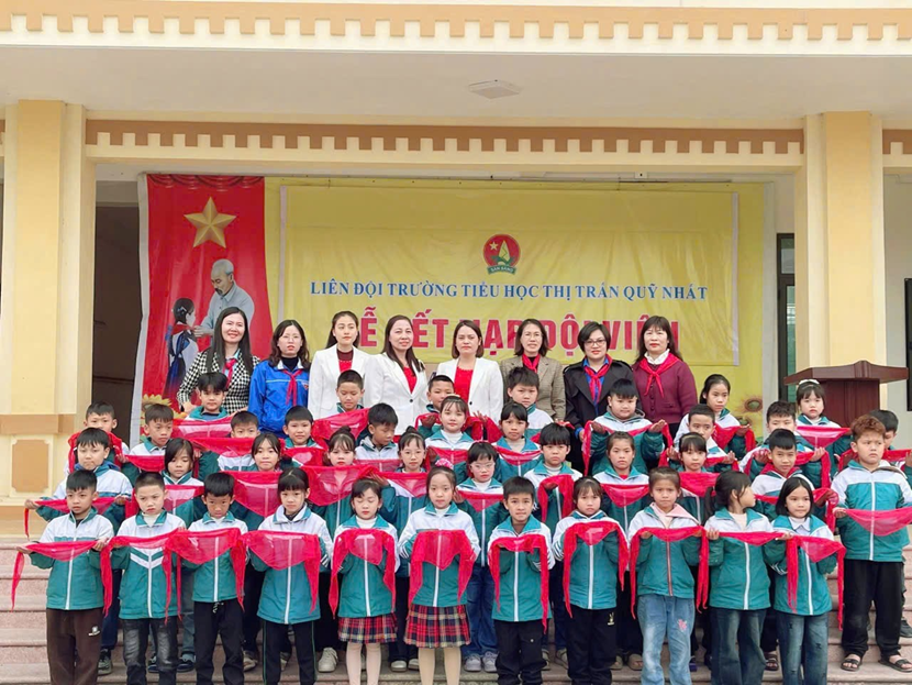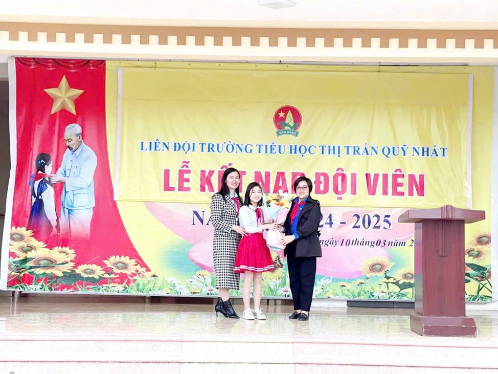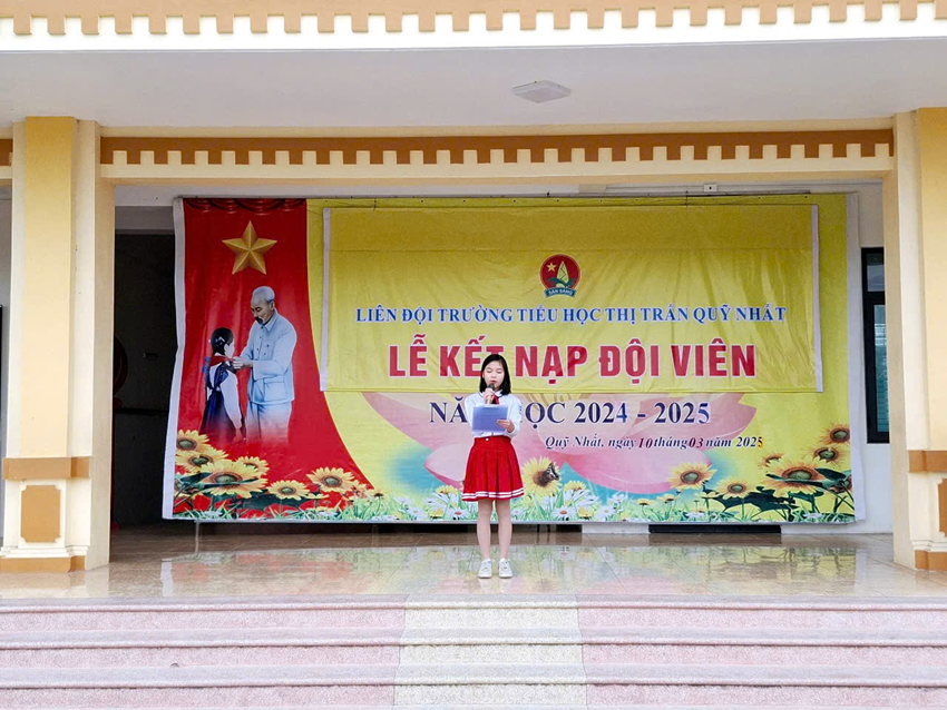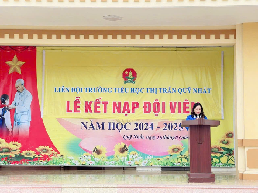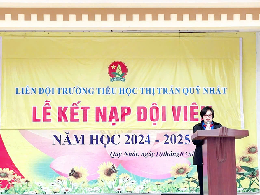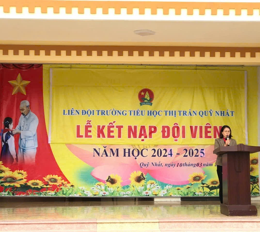 Phát biểu tại Lễ kết nạp Đội viên mới, cô Nguyễn Thị Mến – Bí thư chi bộ – Hiệu trưởng nhà trường và chị Trần Thị Ngọc Ánh – Chủ tịch Hội đồng Đội thị trấn Quỹ Nhất đều chúc mừng, bày tỏ sự tin tưởng và hi vọng các em Đội viên sẽ nỗ lực hơn nữa trong học tập và rèn luyện, thi đua lập nhiều thành tích để trở thành “Con ngoan, trò giỏi, đội viên tốt”, xứng đáng với danh hiệu “Cháu ngoan Bác Hồ”.