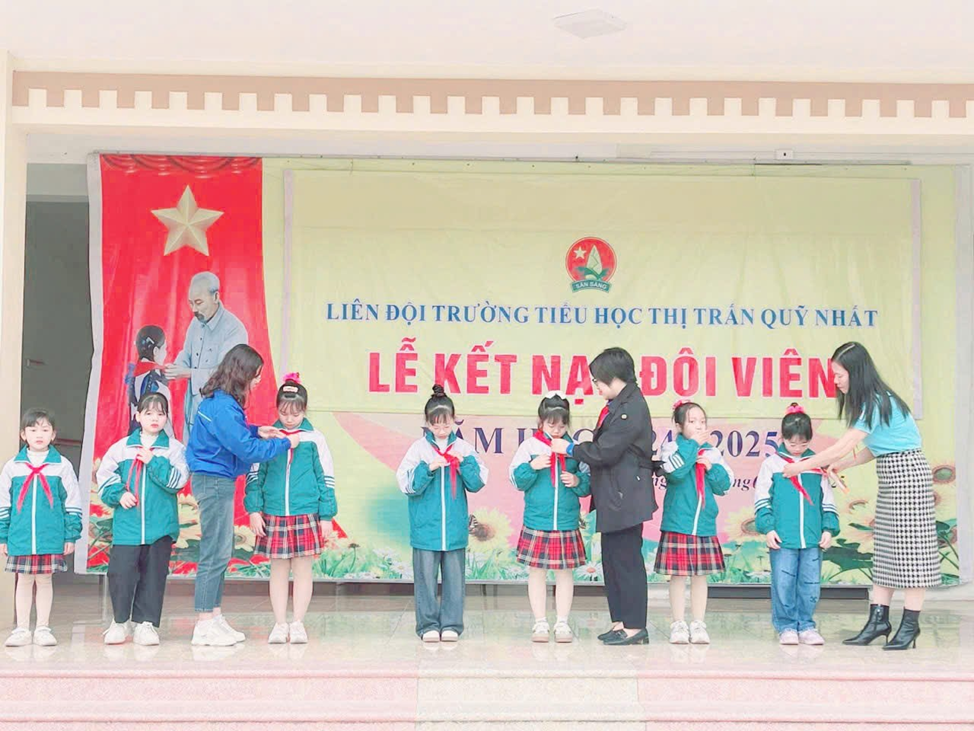 Thực hiện Chương trình công tác Đội và phong trào thiếu nhi năm học 2024-2025, nhân dịp kỷ niệm 84 năm Ngày thành lập Đội TNTP Hồ Chí Minh (15/5/1941-15/5/2025). Được sự nhất trí của Ban giám hiệu nhà trường, sáng thứ Hai ngày 10 tháng 3 năm 2025 Liên đội trường Tiểu học thị trấn Quỹ Nhất đã long trọng tổ chức lễ kết nạp Đội viên cho 112 em Nhi đồng khối lớp 3 có nguyện vọng đứng trong hàng ngũ của Đội.
