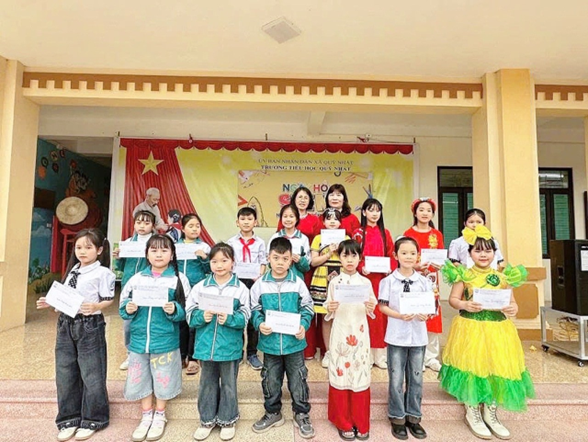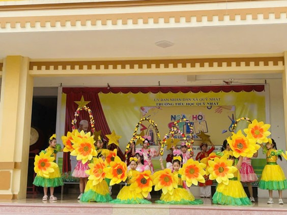 Trên sân khấu rực rỡ sắc hoa, những giai điệu trong trẻo vang lên như lan tỏa niềm vui và sức sống của tuổi học trò. Những điệu múa mềm mại, những động tác nhịp nhàng cùng tiếng hát hồn nhiên của các em đã làm cho không gian ngày hội trở nên rộn ràng, ấm áp và đầy cảm xúc.