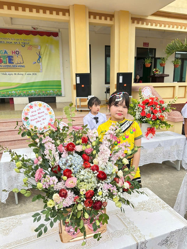 Mỗi lẵng hoa không chỉ là một tác phẩm nghệ thuật mà còn là thông điệp yêu thương, lời tri ân chân thành mà các em học sinh gửi tới bà, mẹ và các cô giáo – những người phụ nữ luôn âm thầm yêu thương, chăm sóc và nâng bước các em trên hành trình trưởng thành.