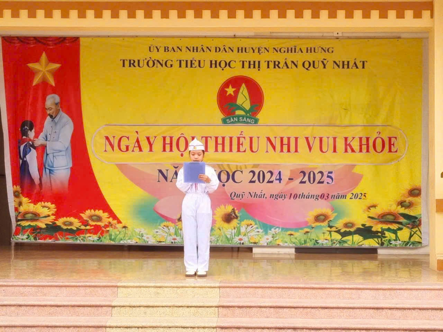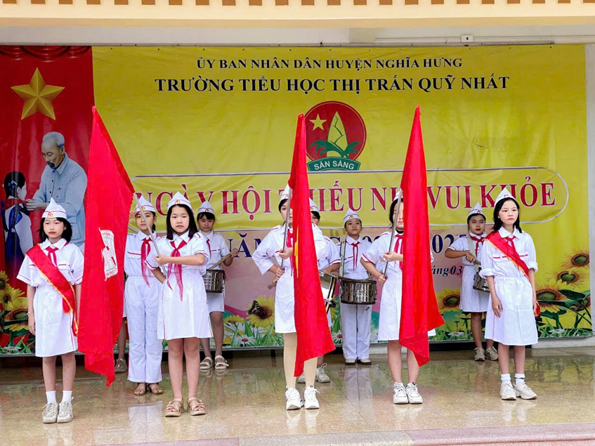 Tiếp nối những truyền thống ấy, sáng ngày 24/3/2025, thực hiện công văn số số 186-KH/TĐTN-TTNTH ngày 19/02/2025 của Tỉnh Đoàn Nam Định về việc tổ chức Ngày hội “Thiếu nhi vui khỏe – Tiến bước lên Đoàn”, Đoàn thanh niên trường Tiểu học thị trấn Quỹ Nhất phối hợp cùng Đội Thiếu niên tiền phong Hồ Chí Minh tổ chức buổi hoạt động ngoại khóa với tên gọi “Thiếu nhi vui khỏe – Tiến bước lên Đoàn” cho các em học sinh trong nhà trường với các nội dung: