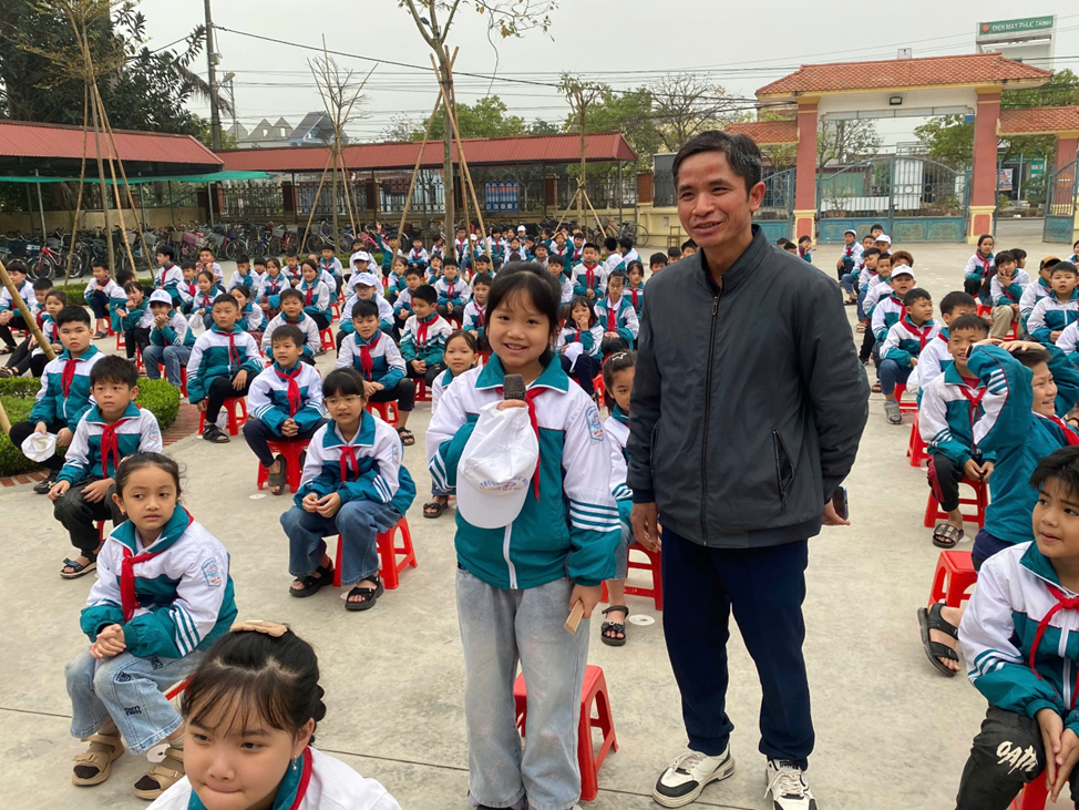 Một điểm nhấn khác trong Ngày hội là tiết sinh hoạt dưới cờ tuần 27 cô Trần Thị Lý – GVCN lớp 5B, còn lan tỏa thông điệp “Bảo vệ môi trường là trách nhiệm của toàn xã hội”, nâng cao nhận thức của các em về tình trạng ô nhiễm môi trường, biến đổi khí hậu, từ đó khuyến khích hành động thiết thực để bảo vệ môi trường xanh – sạch – đẹp.