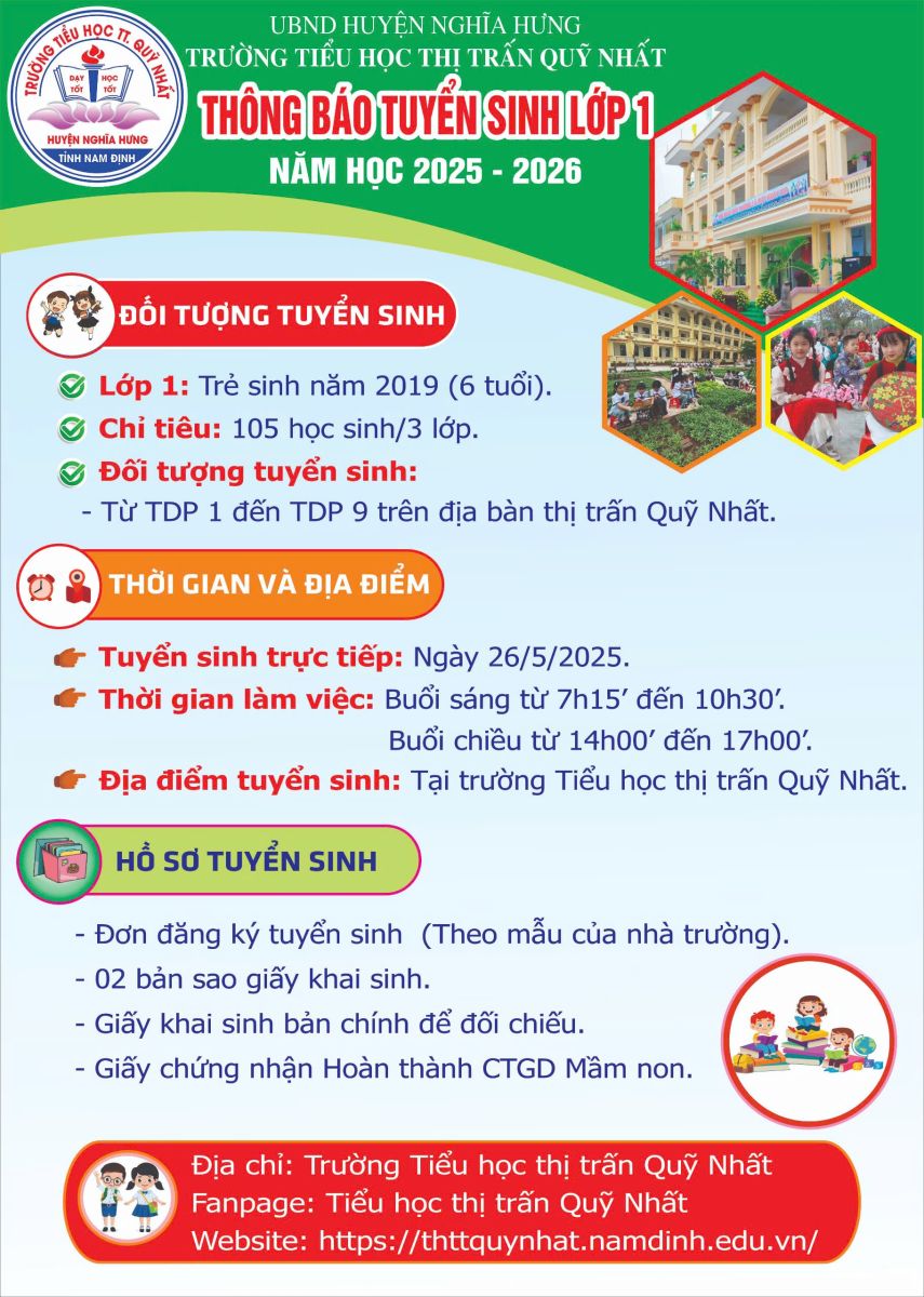 Thông báo tuyển sinh lớp 1 năm học: 2025-2026 của trường Tiểu học Thị trấn Quỹ Nhất