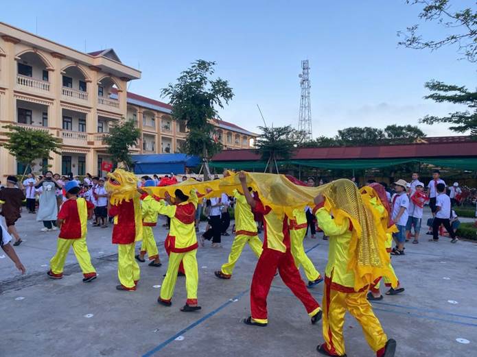 Tiết mục biểu diễn múa lân, múa rồng hấp dẫn, sôi động khiến cho học sinh vô cùng thích thú.