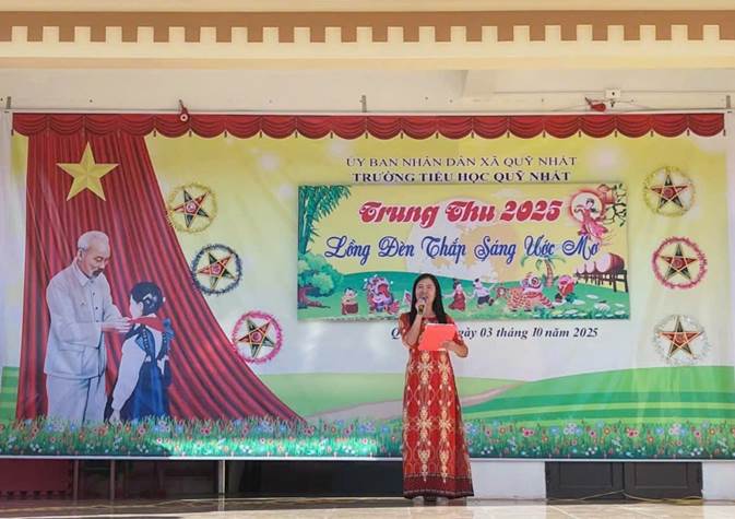Mở đầu chương trình cô Nguyễn Thị Mến lên khai mạc ngày hội “Tết Trung thu năm 2025” Trường Tiểu học Quỹ Nhất.