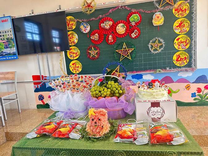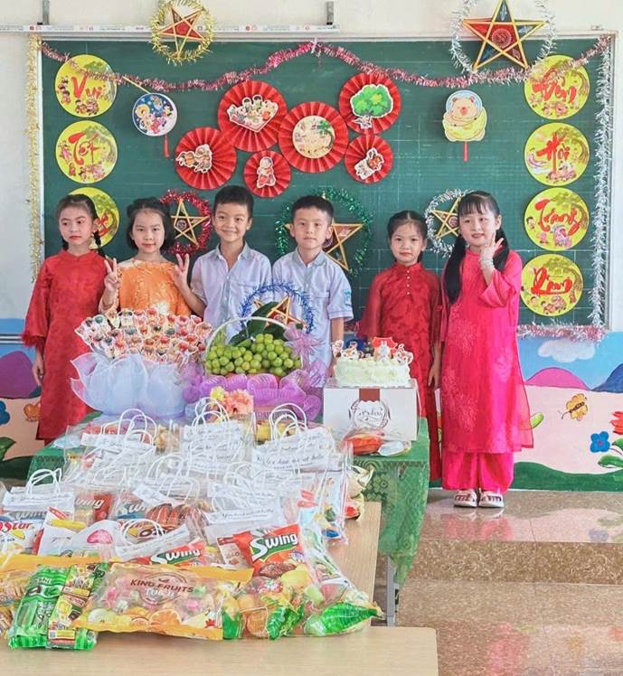 Tết Trung thu không chỉ mang đến niềm vui rộn ràng cho các em học sinh mà còn là dịp để các em nhận được sự quan tâm, sẻ chia từ cha mẹ, thầy cô và những tấm lòng hảo tâm. Trong ngày hội, bác Hội trưởng hội Cha mẹ học sinh cùng đại diện các nhà tài trợ đã trực tiếp trao tặng những phần quà Trung thu ý nghĩa đến tay các em. Đặc biệt, gia đình em Vũ Văn Biên – Đặng Thị My My đã gửi tặng nhà trường 8 thùng bánh và 36 xuất quà, góp phần làm cho không khí ngày hội thêm ấm áp và trọn vẹn niềm vui cho các em.