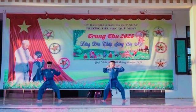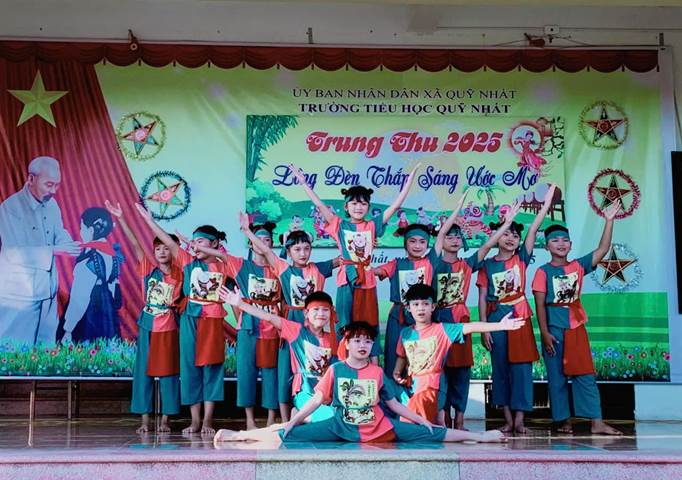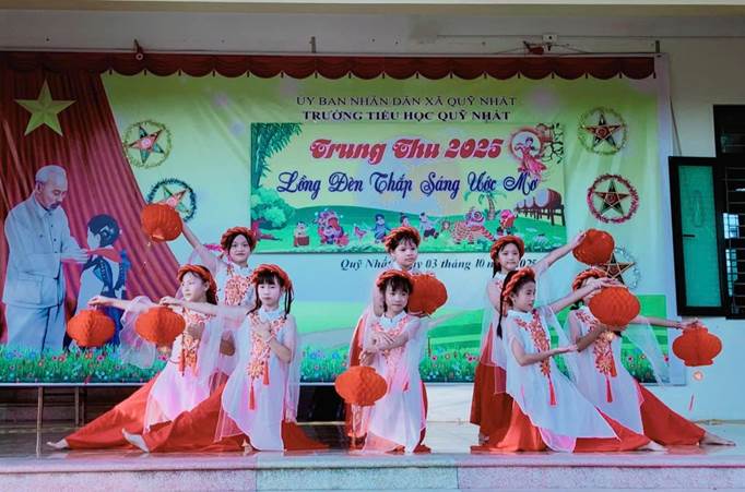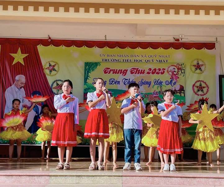 Tiếp theo chương trình các em còn được thưởng thức những tiết mục văn nghệ đặc sắc do thầy và trò trường Tiểu học Quỹ Nhất dàn dựng công phu. Tiếng hát trong trẻo, điệu múa rộn ràng trong sắc màu trang phục đã đem đến một không khí tươi mới, náo nức và góp phần làm nên thành công cho chương trình “Tết Trung thu năm 2025” hôm nay. Các em học sinh trường Tiểu học Quỹ Nhất không chỉ chăm ngoan, học giỏi mà còn rất tài năng.